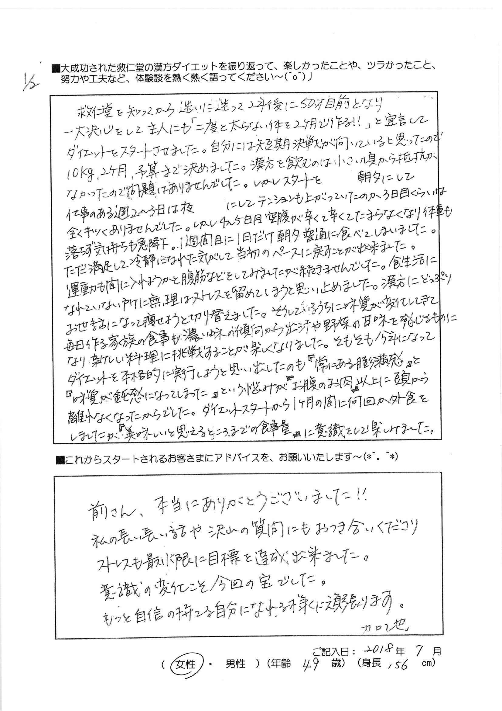 2018年7月 49歳156cm 女性のお客様です