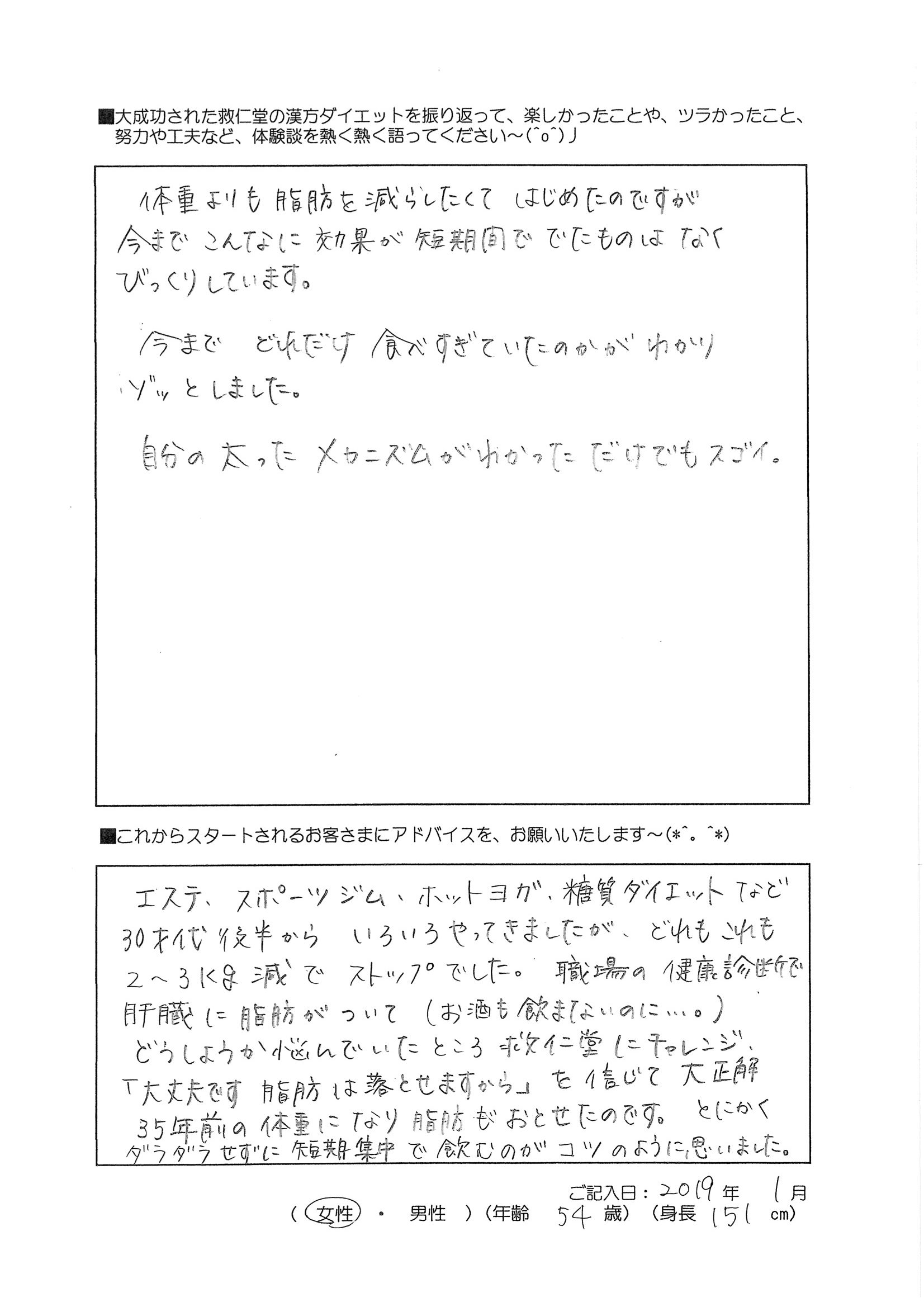 2019年1月 54歳151cm 女性のお客様です