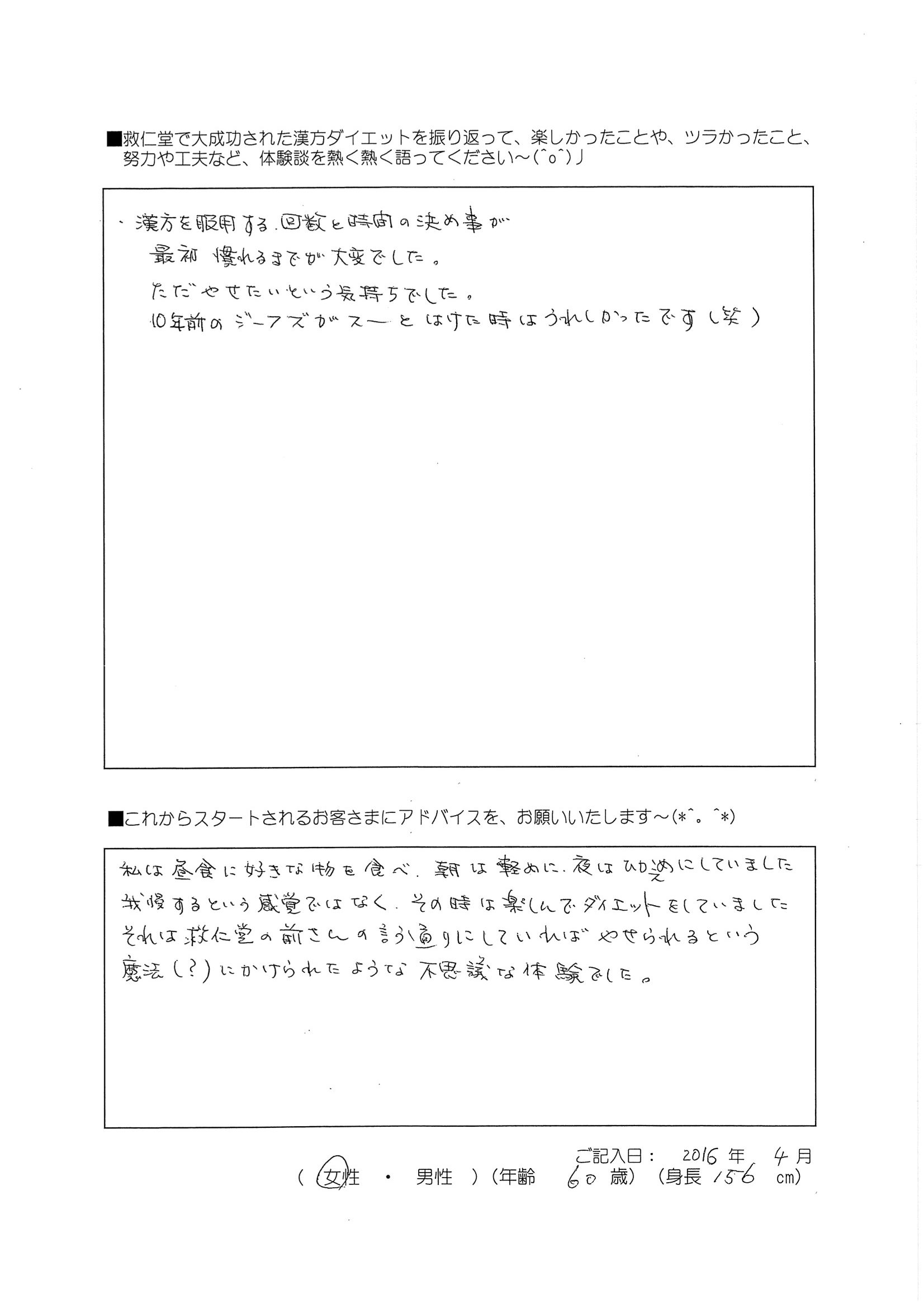 2016年4月 60歳156cm 女性のお客様です